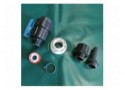 El set incluye n.2 portamangueras para tuberías de 32/38 mm, n.2 adaptadores para tuberías de 50 mm, n.2 abrazaderas y n.2 rollos de teflón.